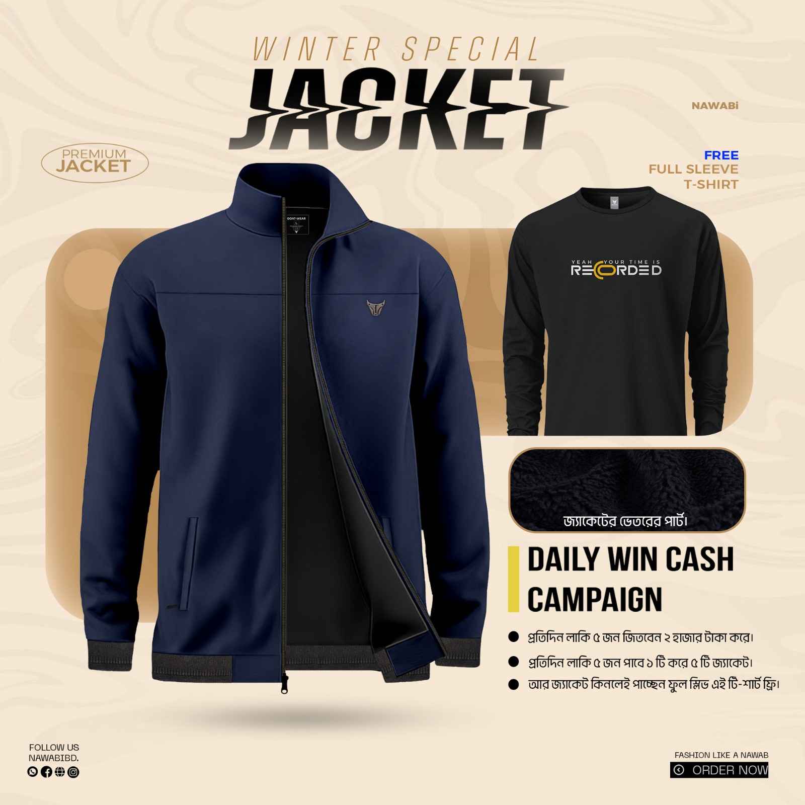 Premium Bonded Jacket with Sherpa (Navy bule)
